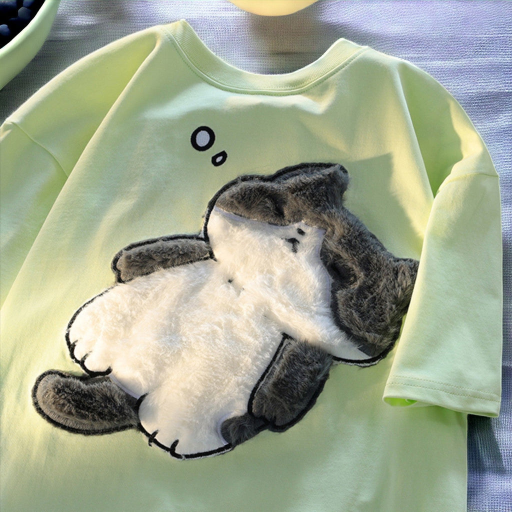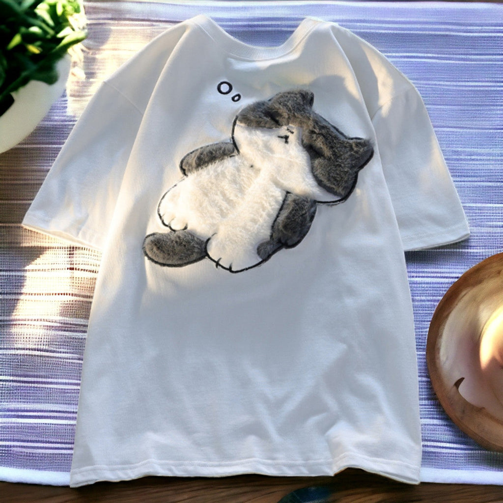 Plongez dans l'univers adorable du kawaii avec ce t-shirt chat japonais. Le neko pelucheux en relief incarne l'essence du "moe", entre douceur tactile et design minimaliste. Parfait pour un look Harajuku décontracté, il capture l'esprit ludique de la culture pop japonaise. Associez-le à un mom jeans pour une allure streetwear kawaii authentique !